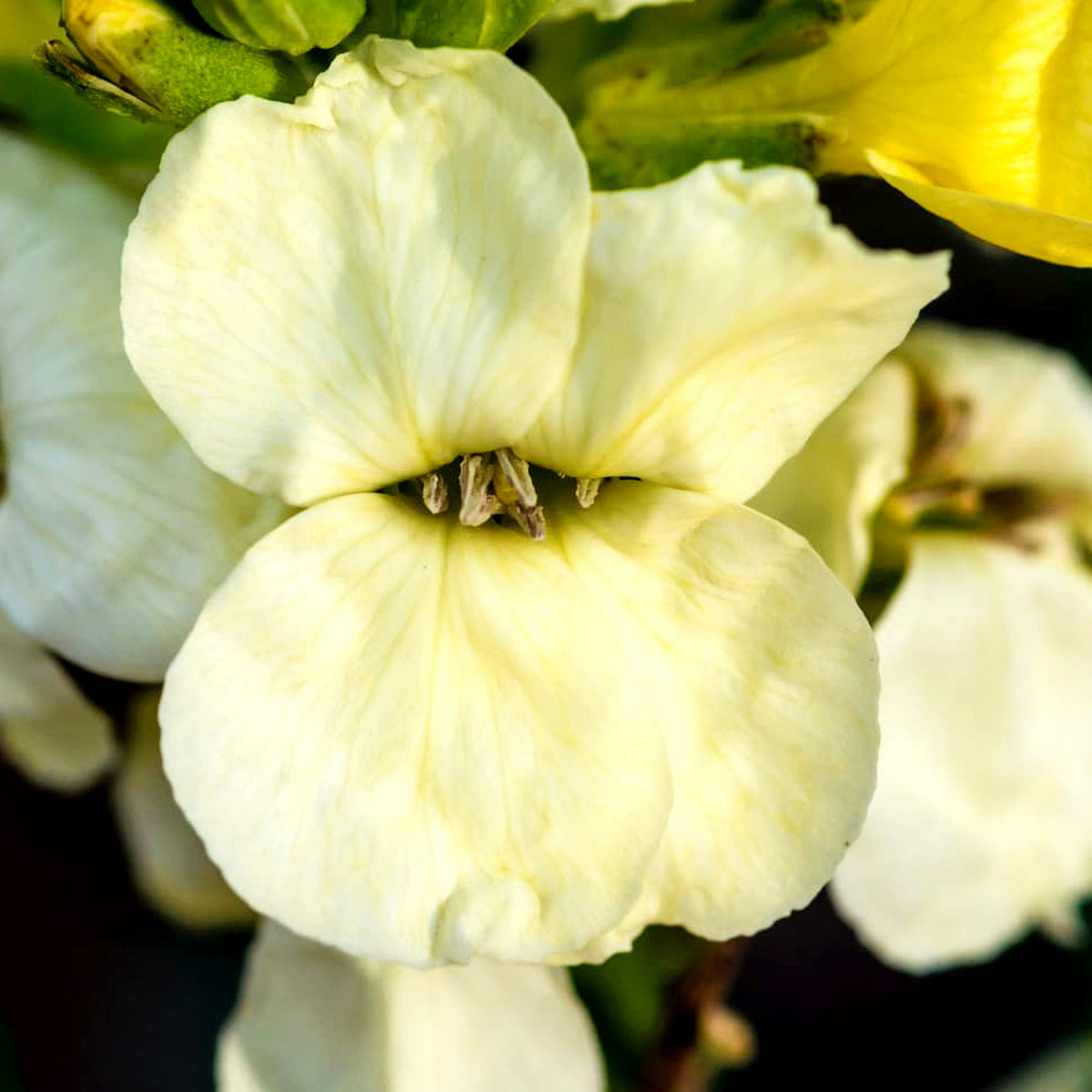 - Ivory White Wallflowers produce a pretty mix of very pale lemon creamy ivory flowers above bright green stems. Will arrive as 10 bare roots, ready for planting now. Ivory White blooms complement well with other plants in rich plums and purples and adds dimension to white and cream planting arrangements. Wallflowers also make a superb cut flower, allowing you to enjoy them in your garden and home.