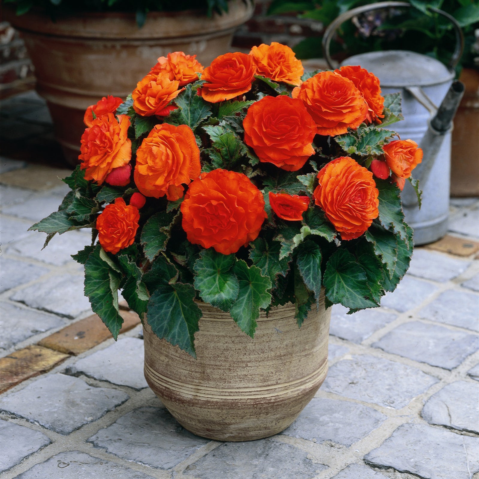 Begonias are sensitive to the cold, so start growing them indoors or harden them off before planting outdoors. When ready to plant outdoors through March and May, plant these tubers with their hollow side up, 2.5 cm deep, 2 cm apart in fertile well draining soil in a sheltered area that gets full sun to partial shade. After planting they can be watered as often as is needed. Soak well when watering to reach the whole root system.