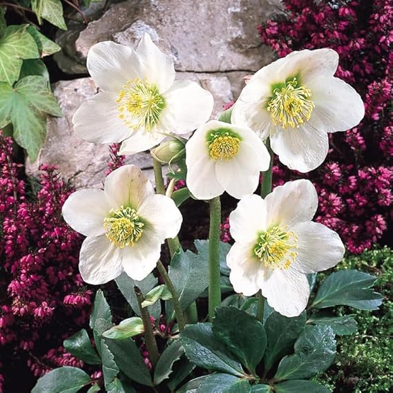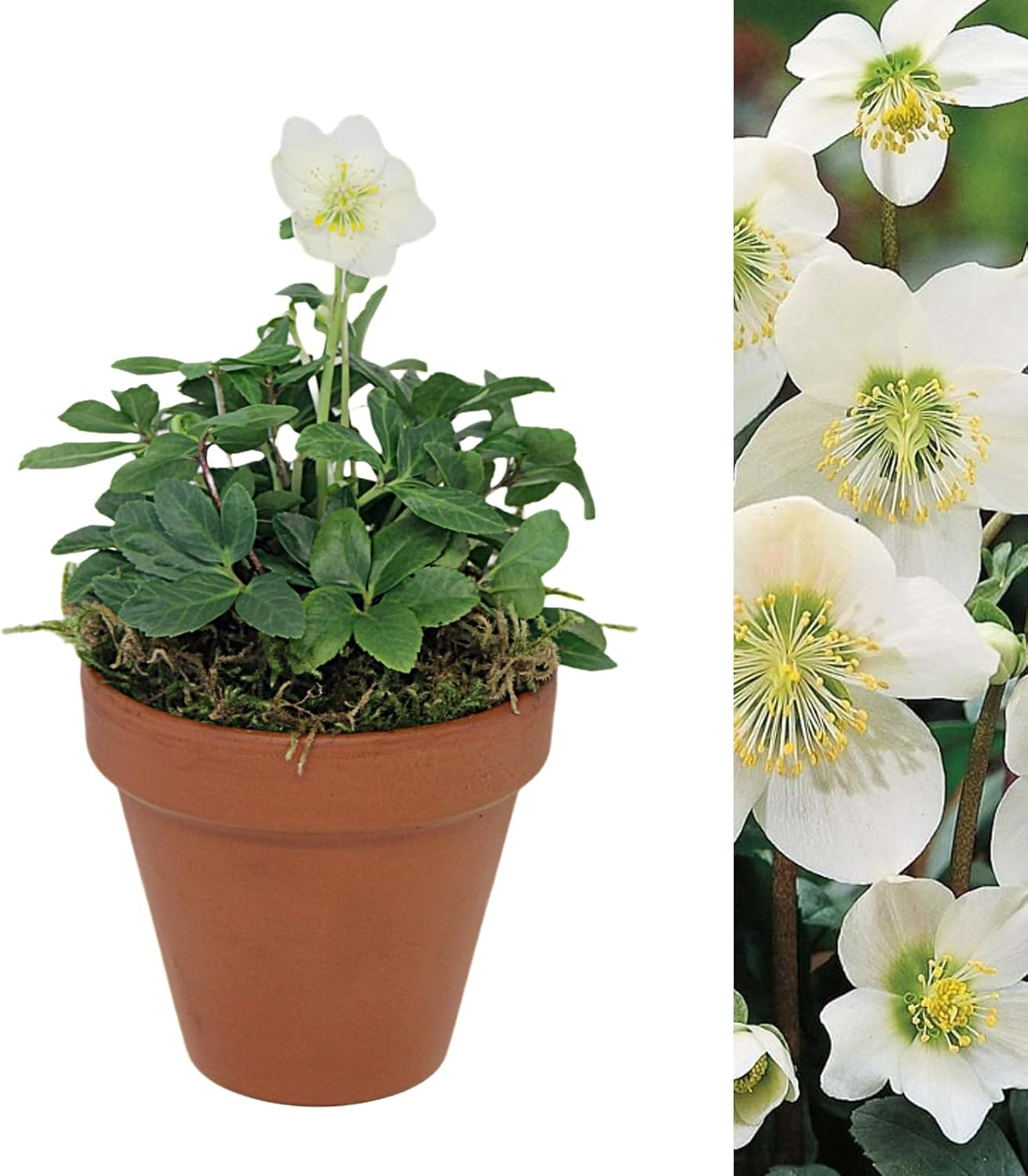 GROWING - Christmas roses are best grown in partial shade but can cope with some sunshine, in moist well draining neutral to alkaline soil that is not too wet or too dry. Hellebore also make great plants for shady areas of the garden withstanding frosts well. As they are perennial plants, they will come back year after year. They can be planted at the front of garden borders, patio pots or window boxes and look lovely when grown in groups.