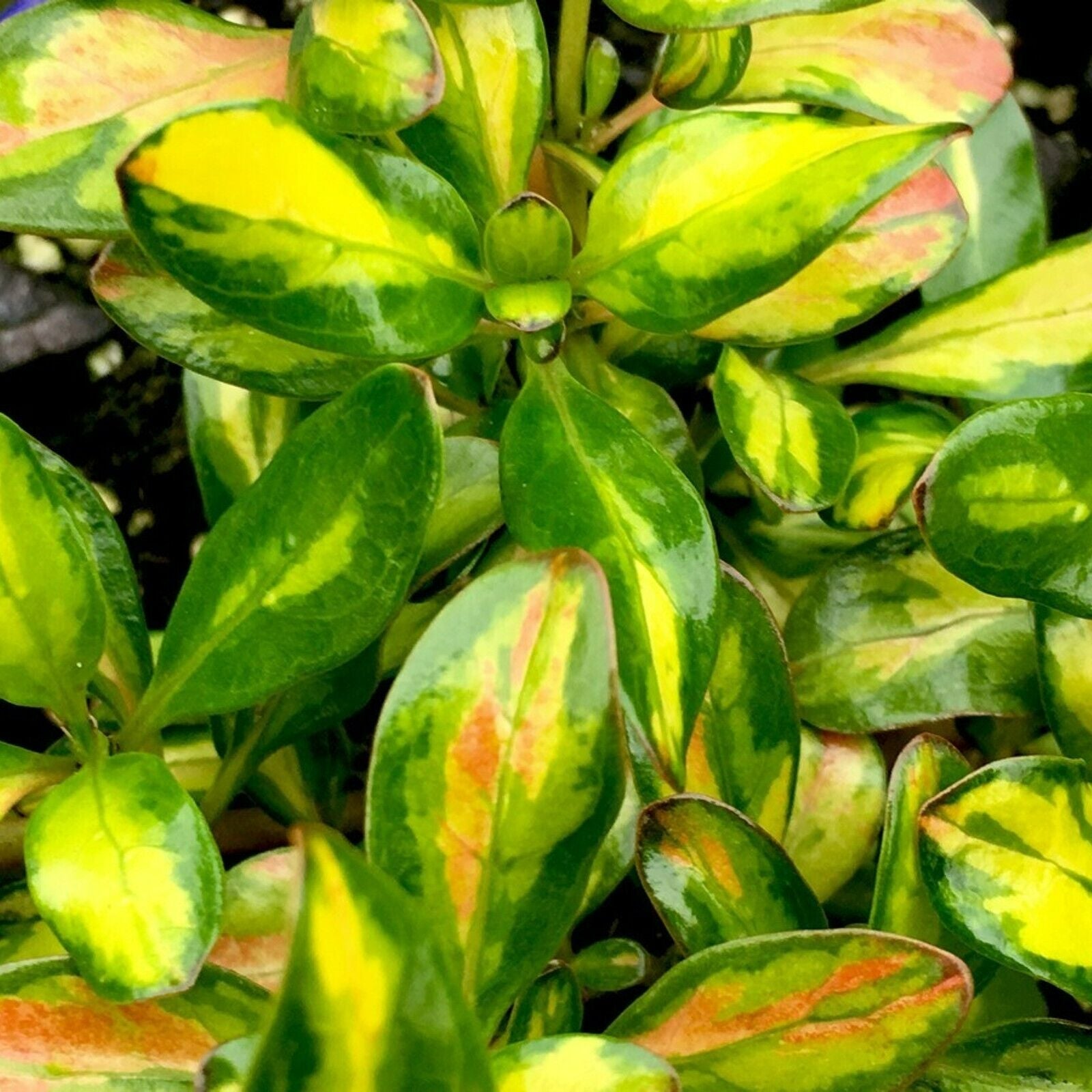 • Coprosma, commonly known as the Mirror Bush or the Looking-glass Plant, is a stunning evergreen shrub that has a compact upright growing habit that produces glossy variegated leaves.