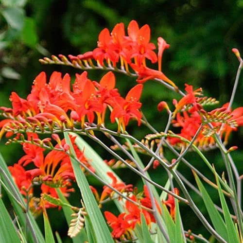 - SUMMER COLOUR - Crocosmia are relatives of the Gladioli family having very similar attributes like their long sword like leaves and tall arching spiked stems that bare bright funnel shaped flowers throughout the summer.