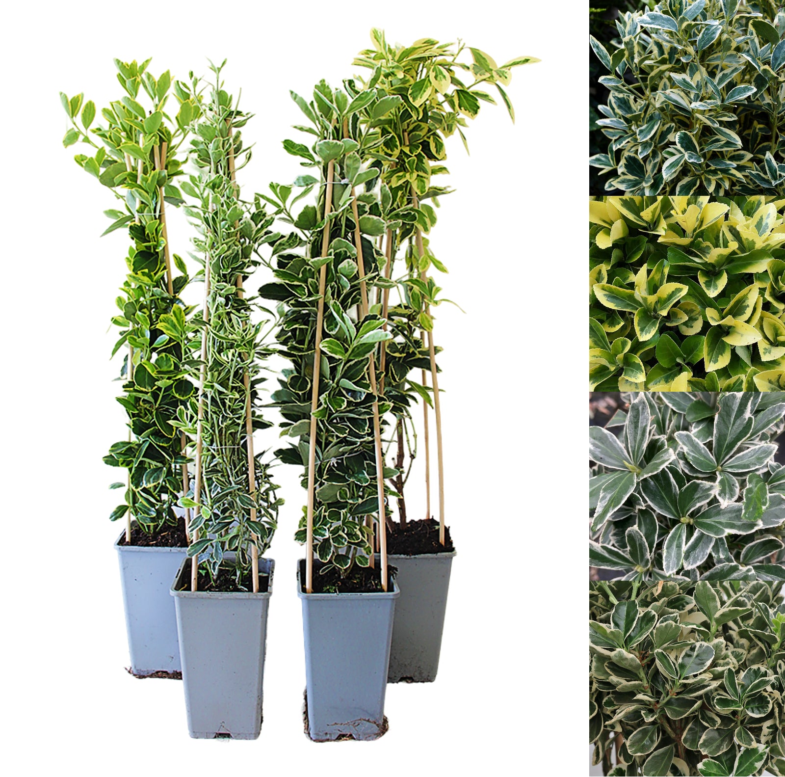 • Euonymus are easy to grow, hardy evergreen shrubs that are often used as hedging and are ideal for patio pots or for planting in garden borders. Euonymus plants come in many varieties and colours, making them very versatile garden shrubs to suit most situations.