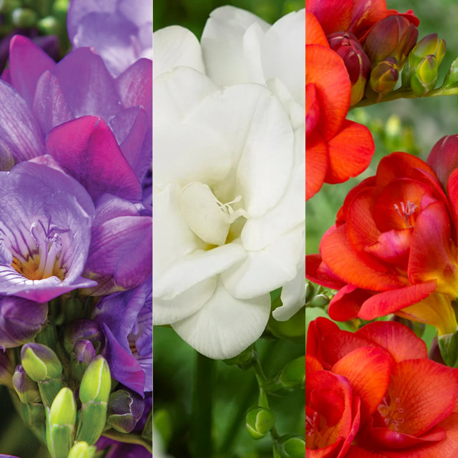 Plant these freesia bulbs in the Spring in fertile, well draining soil in a warm sunny sheltered spot. These corms should be planted between 3 and 5 cm deep and 5cm apart, with the slightly pointed end upwards and roots downwards. After planting, water well and water about once a week during the growing season. After flowering, cut the spent flower stalks down to ground level and allow the foliage to die back naturally.