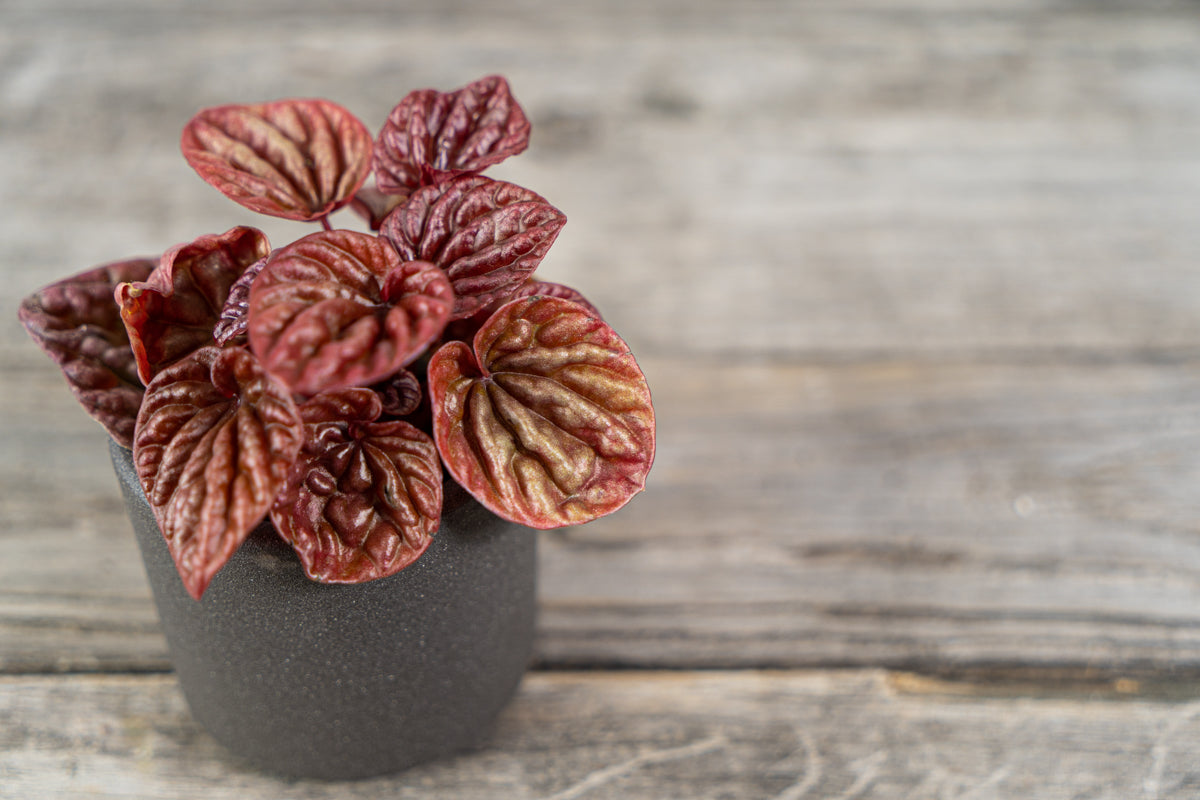 - The Peperomia Quito is an unusual, colourful Peperomia featuring deeply ridged, heart-shaped leaves in orange, pink and bronze tones. The foliage is more vibrant when grown in partial sun or bright, indoor light.
