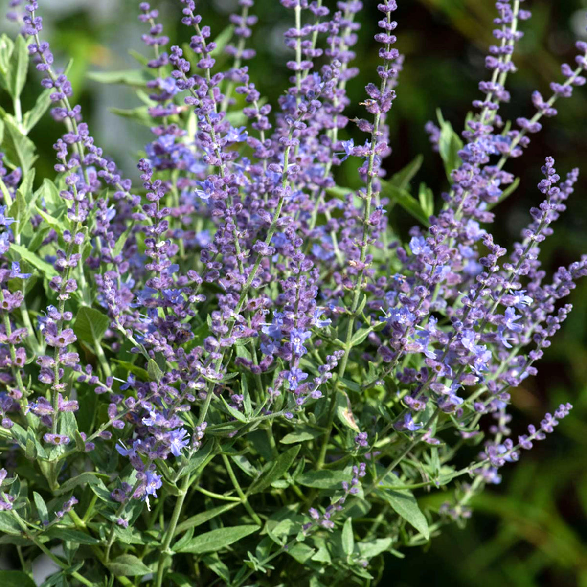 - The Perovskia ‘Bluesette’ is a lovely new variety and is popular due to its versatile and adaptable compact nature, and long flowering period during the Summer and Autumn, making it ideal for a variety of garden settings and locations. This plant has attractive silvery-green feathery foliage that looks stunning against the pale lilac/blue fragrant flowers.