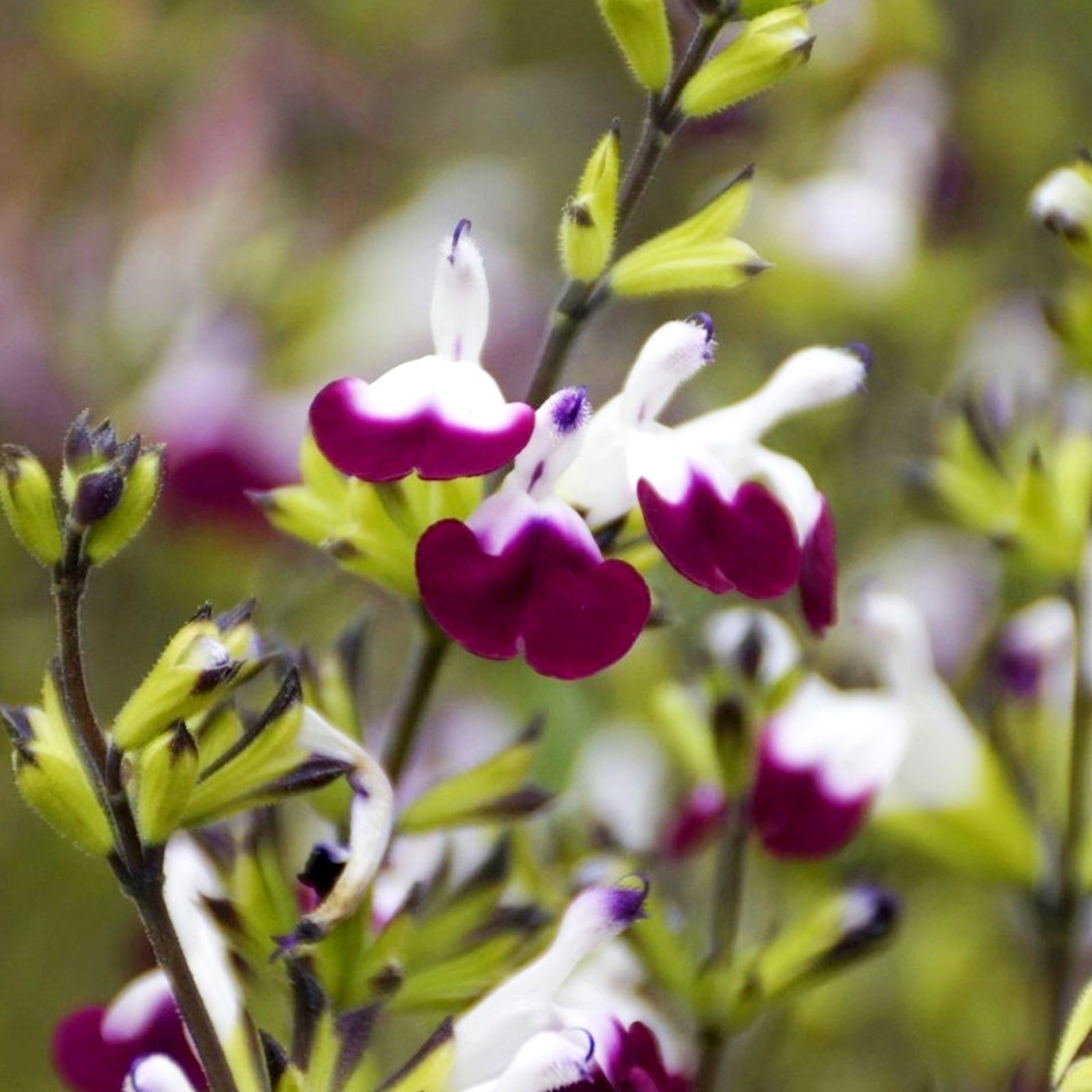 - Salvia Amethyst Lips is an evergreen shrub that produces aromatic mid-green leaves and purple and white bicolour flowers during early Summer to Autumn. It is ideal growing in pots and borders and it is enjoyed by bees and other pollinating insects. This plant is an ideal addition to any garden but in particular cottage, coastal and gravel gardens.