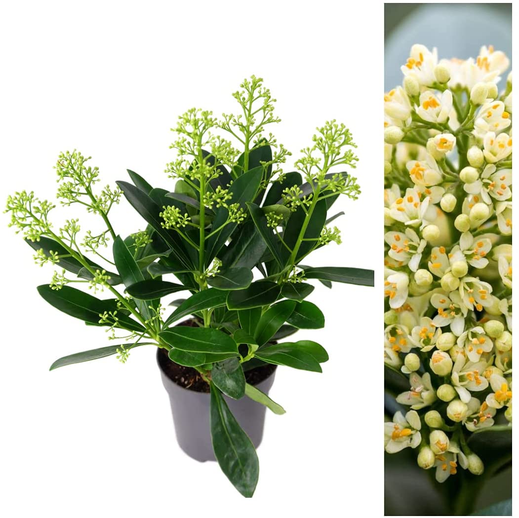 - Autumn Diamond is a Skimmia with white flowers that remain white during the winter.