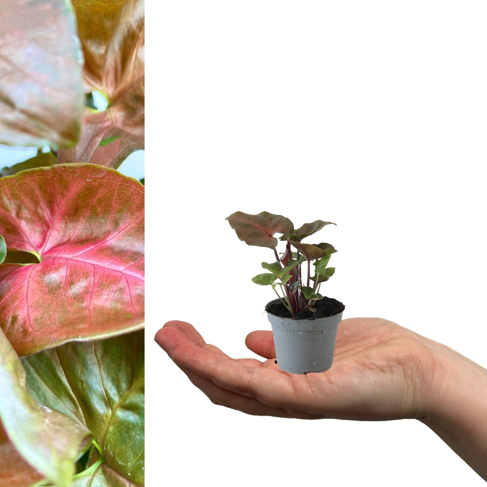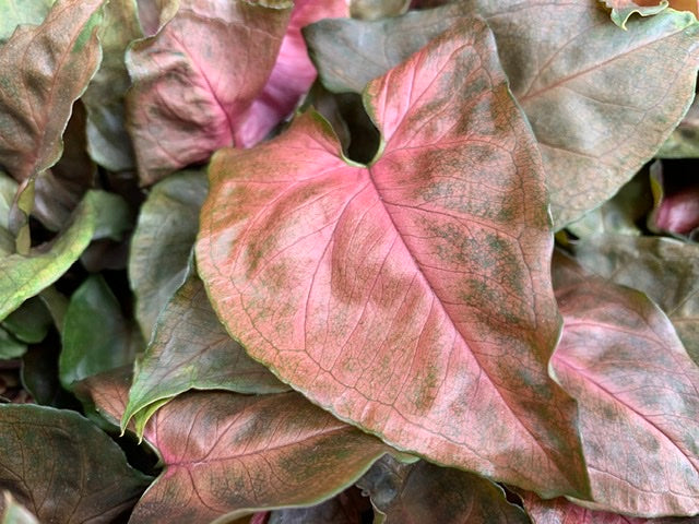 - The Syngonium Maria is an attractive Indoor with arrowhead-shaped leaves that mature to a more shield shape in shades of green and coral-pink with silver or white variegation.